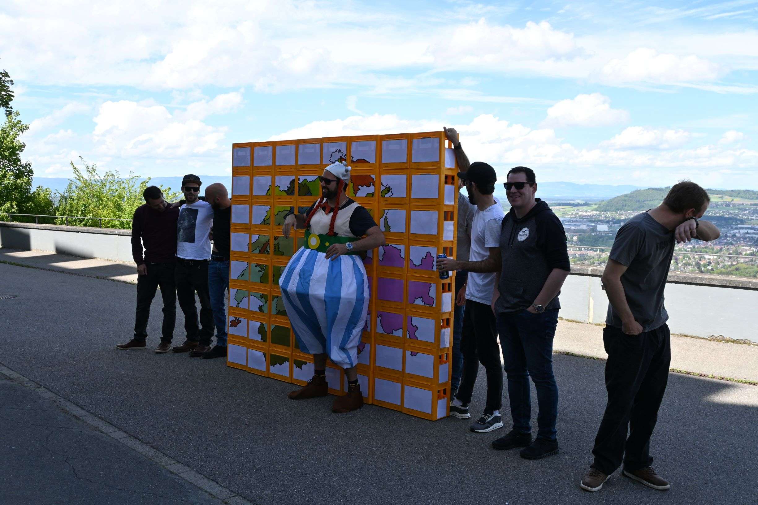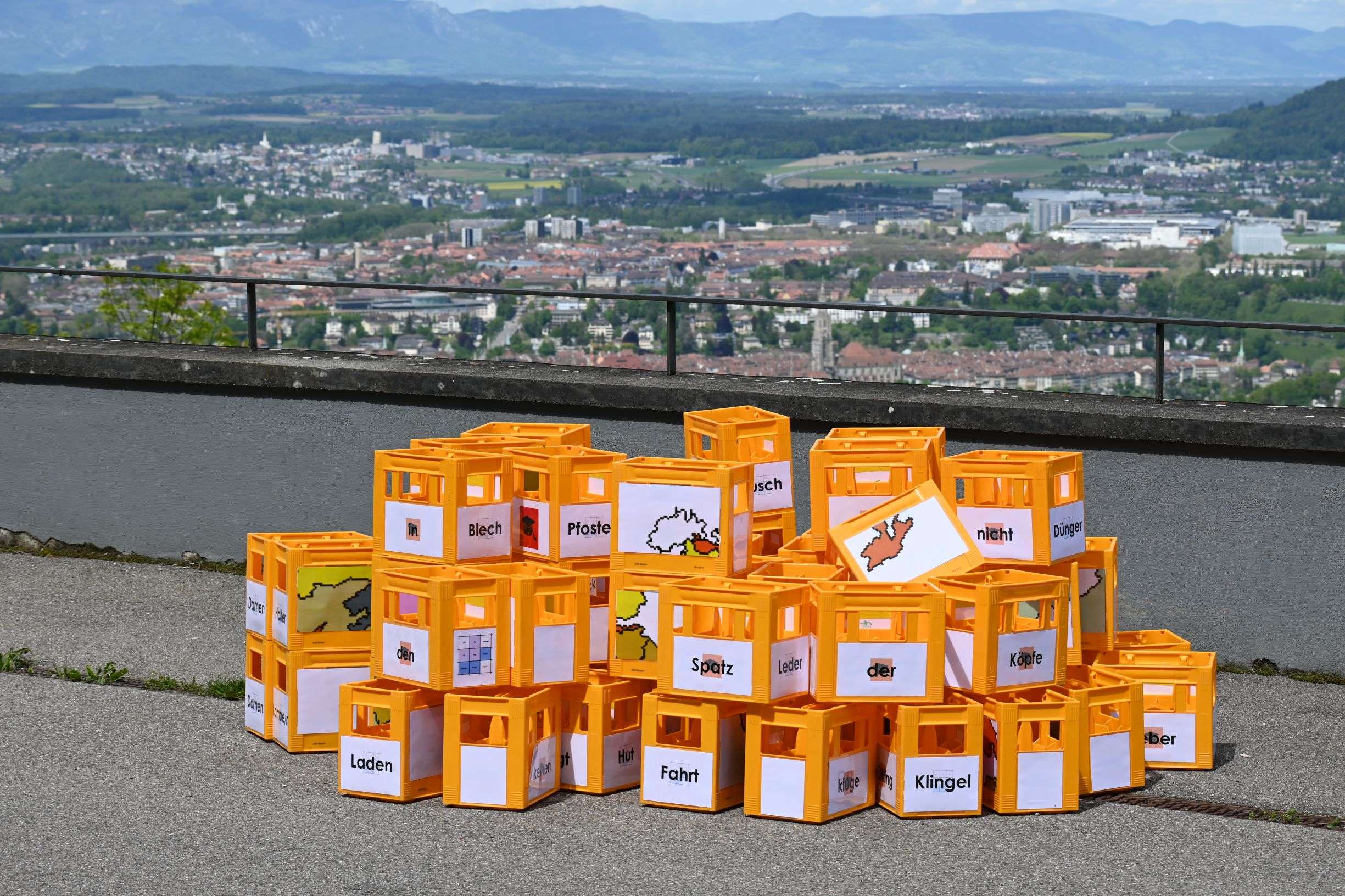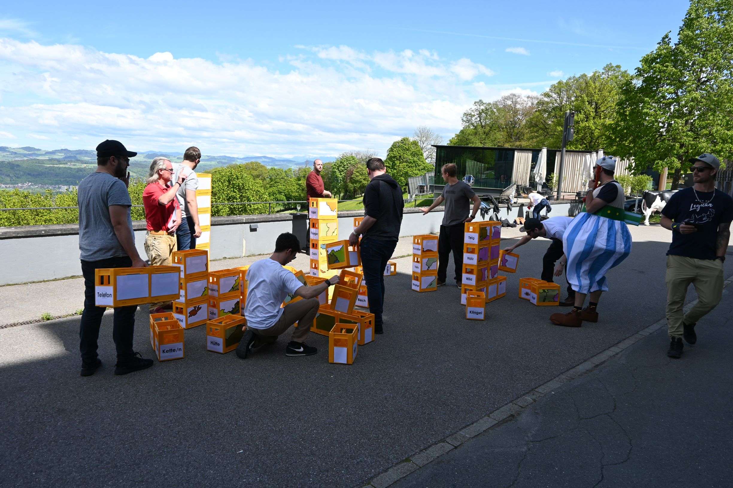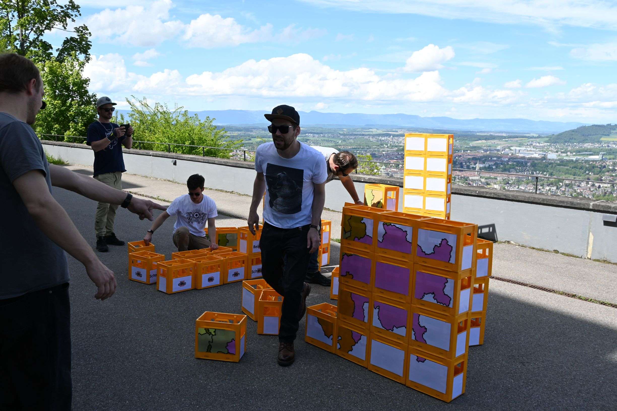 Bei der Testrunde mit der Poltergruppe wurde die Variante «Schweiz» gewählt. Das heisst, die Harassen müssen so zusammengesetzt werden, dass die Karte der Schweiz erkennbar wird.